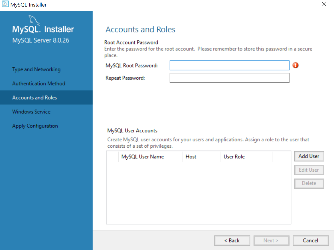 Root Password 설정. 해당 패스워드는 반드시 기억하고 있어야 함