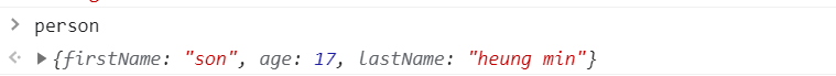 person.lastName = 'heung min'; // 객체를 생성한 후 프로퍼티 할당