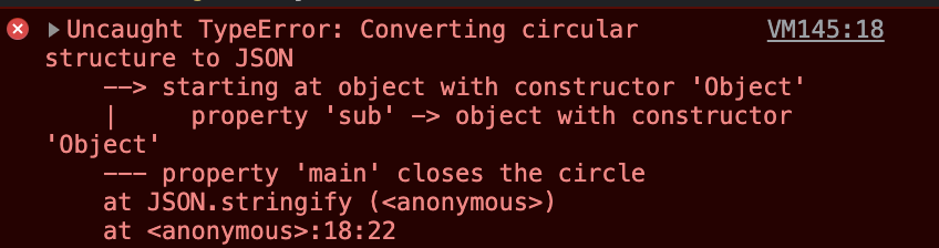 JSON.stringify 는 중첩 객체(객체의 프로퍼티 값이 객체)도 생성해 주지만 순환참조(2개의 객체가 값으로 서로를 참조)가 있으면 무시함